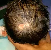 This eight year old boy complains of headache, lasting for last 3 months. No history of trauma. CNS exam including fundus was normal. Locallized tenderness noticed on the parietal side. No swelling. CT skull is enclosed